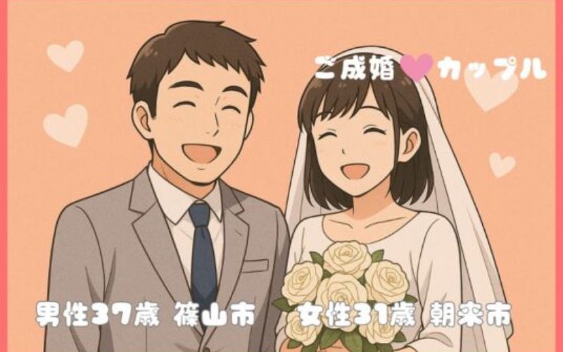 男性は篠山市在住の37歳の方、女性は朝来市在住の31歳の方。約1年の活動を経て、ご成婚という幸せなゴールを迎えられました。